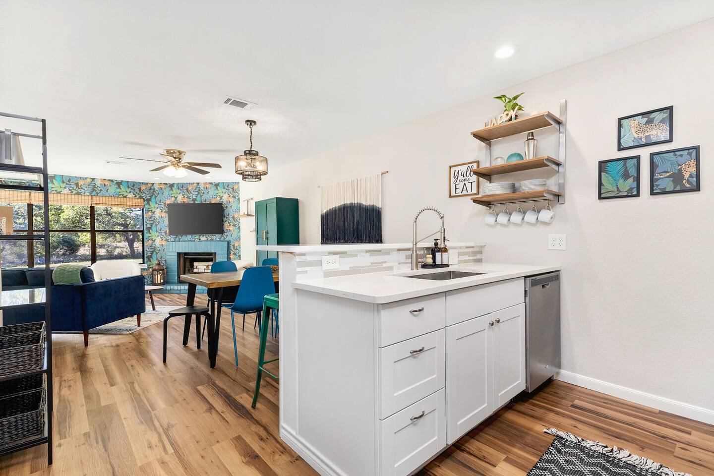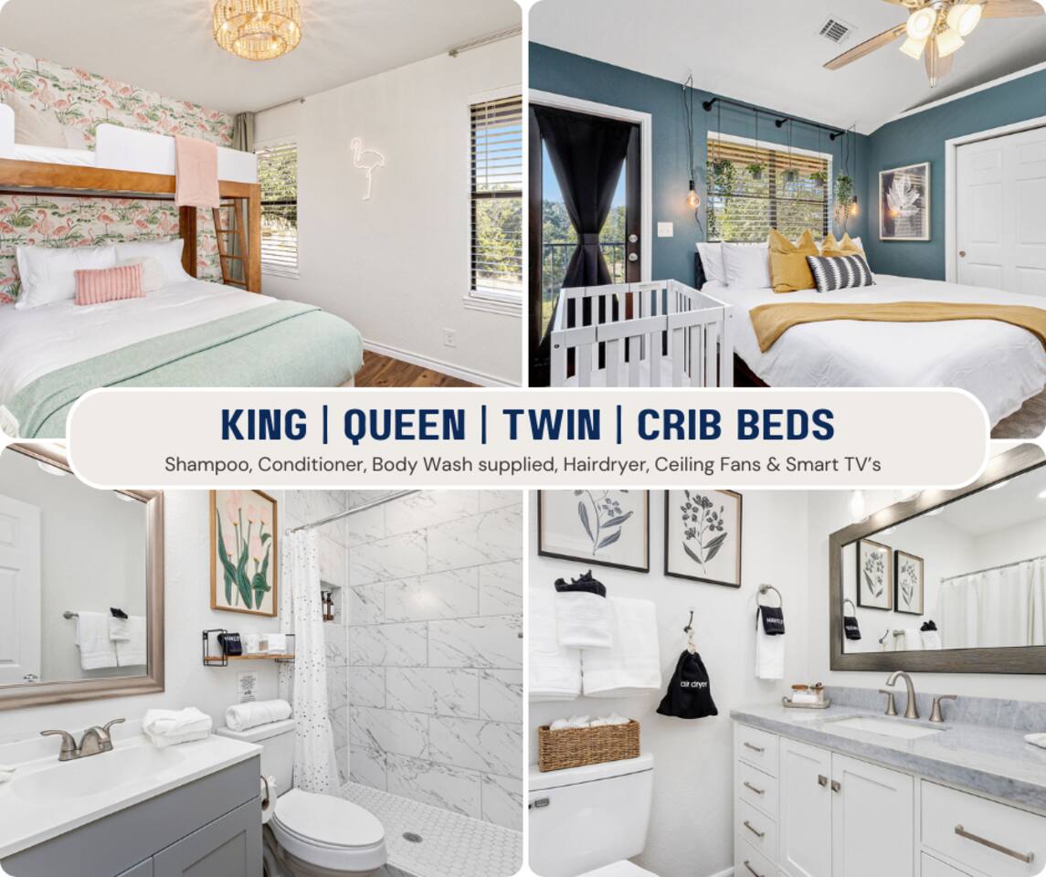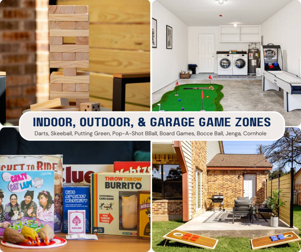 Just minutes from Canyon Lake, Wild Side Retreat is the perfect getaway for families and groups. Enjoy a fully equipped game garage with darts, pop-a-shot basketball, skeeball, and a putting mat, plus backyard fun with giant Jenga and cornhole. Guests also have access to a community pool, along with cozy indoor spaces, board games, and easy access to hiking, shopping, live music, and great local eats.